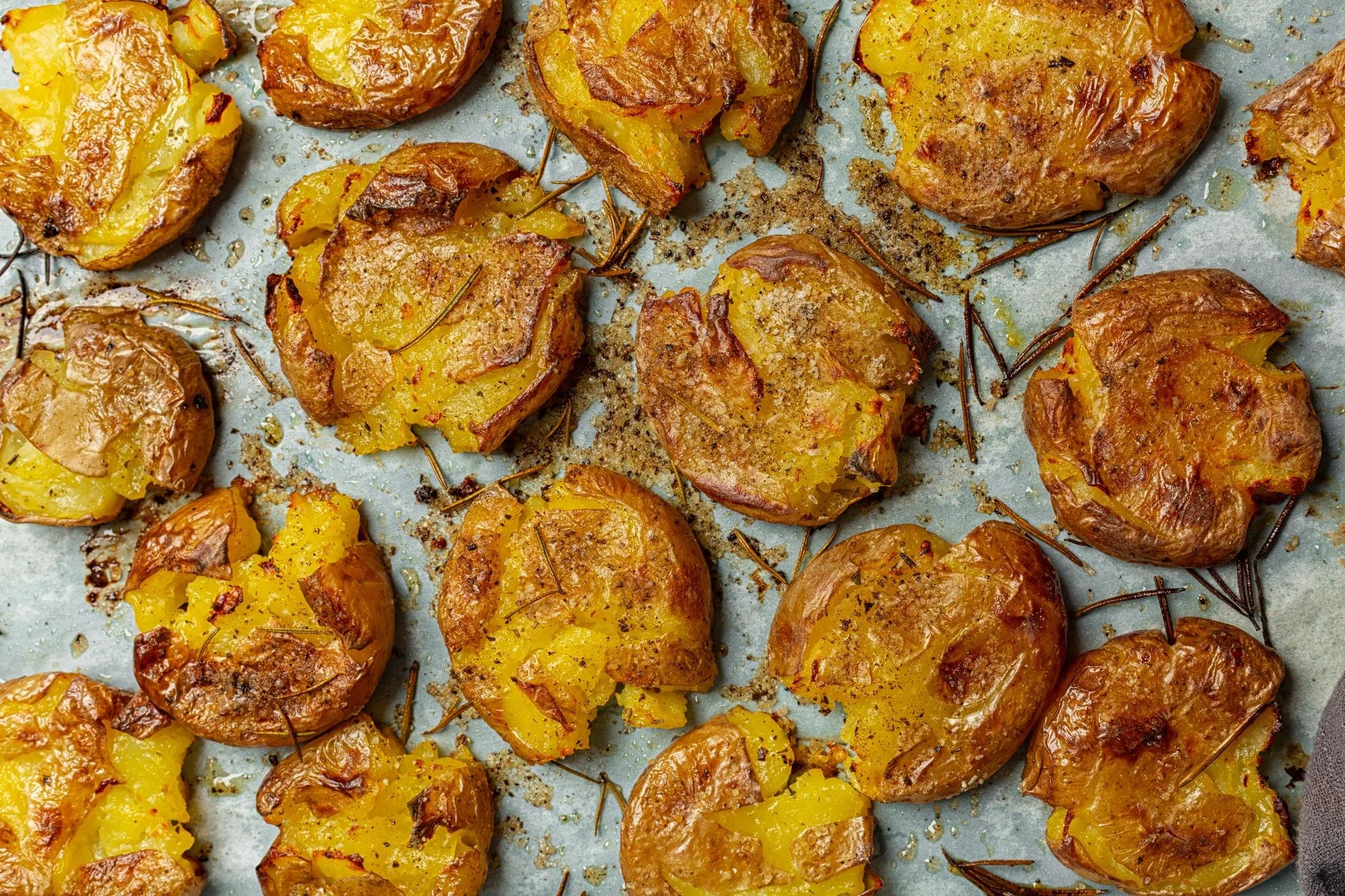 Brush or spoon generously over each smashed potato, making sure it gets into the cracks.